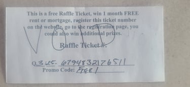 Did you receive a Raffle Ticket that looks like this or similar (See Photo’s Below)? If so please use the form below to register your raffle ticket which makes it valid, once you register your ticket you will automatically be taken to our Raffle page, where you may use your promo code if you wish to purchase additional tickets. If you choose to purchase one or more additional tickets, those tickets, and your promotional ticket (s) will be emailed to you within 7 business days. All donations from the sale of the tickets go to support Ministries that provide assistance to individuals, Military families, and families in need.